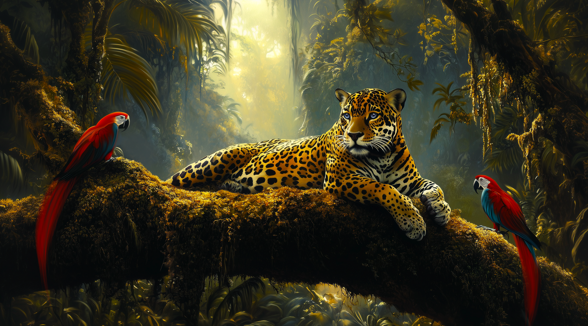 Haz de Esplendor Dorado un símbolo de poder y misterio en tu espacio. Esta obra captura la grandeza del jaguar, cuya presencia imponente y reflejos áureos evocan la leyenda de El Dorado. En lo profundo de la selva, su mirada serena y dominante refleja la esencia de la riqueza ancestral. Unidades limitadas. Hazlo tuyo ahora y deja que su espíritu dorado ilumine tu entorno