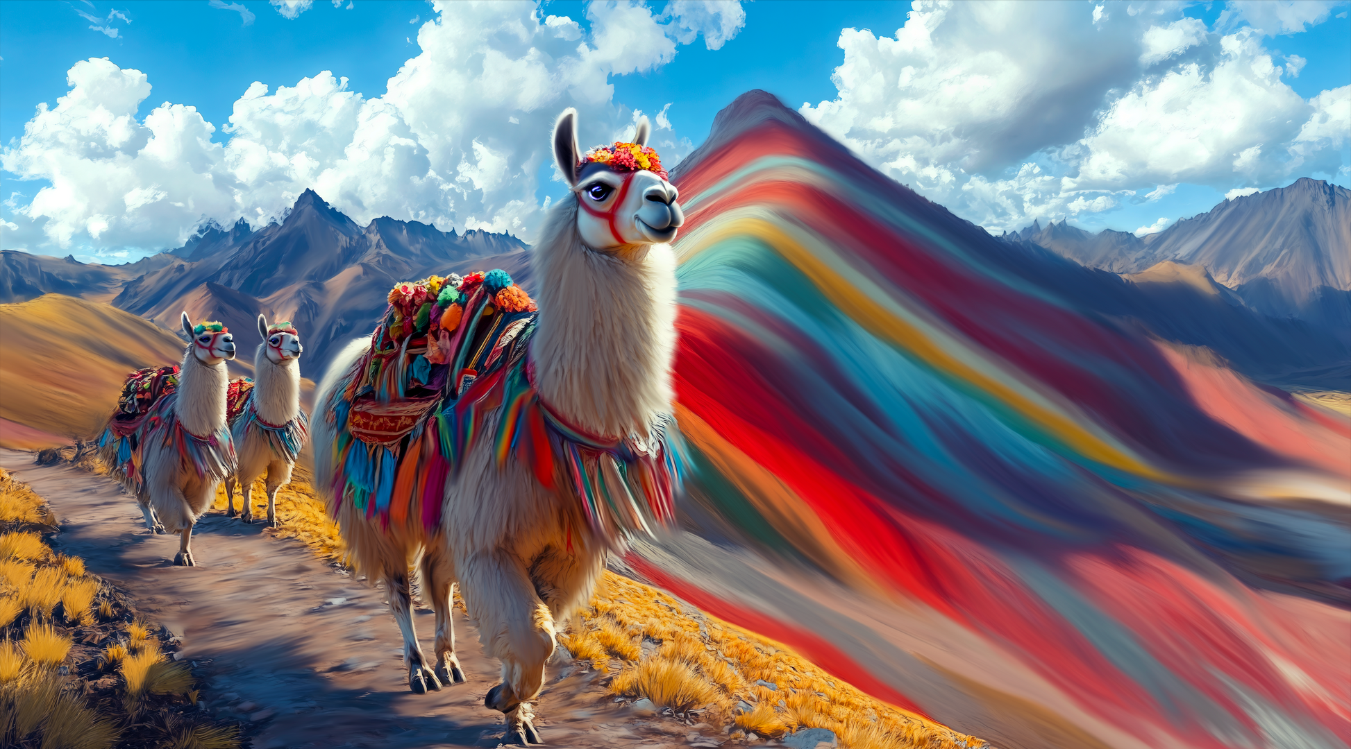 Déjate guiar por Guardianes del Vinicunca, una obra que celebra la majestuosidad andina. En lo más alto del altiplano, las llamas avanzan con paso firme, custodiando el sendero sagrado de la Montaña de 7 Colores. Entre paisajes imponentes y tejidos ancestrales, su presencia honra un legado que trasciende el tiempo. Unidades limitadas. Hazlo tuyo y siente el espíritu de los Andes en tu espacio